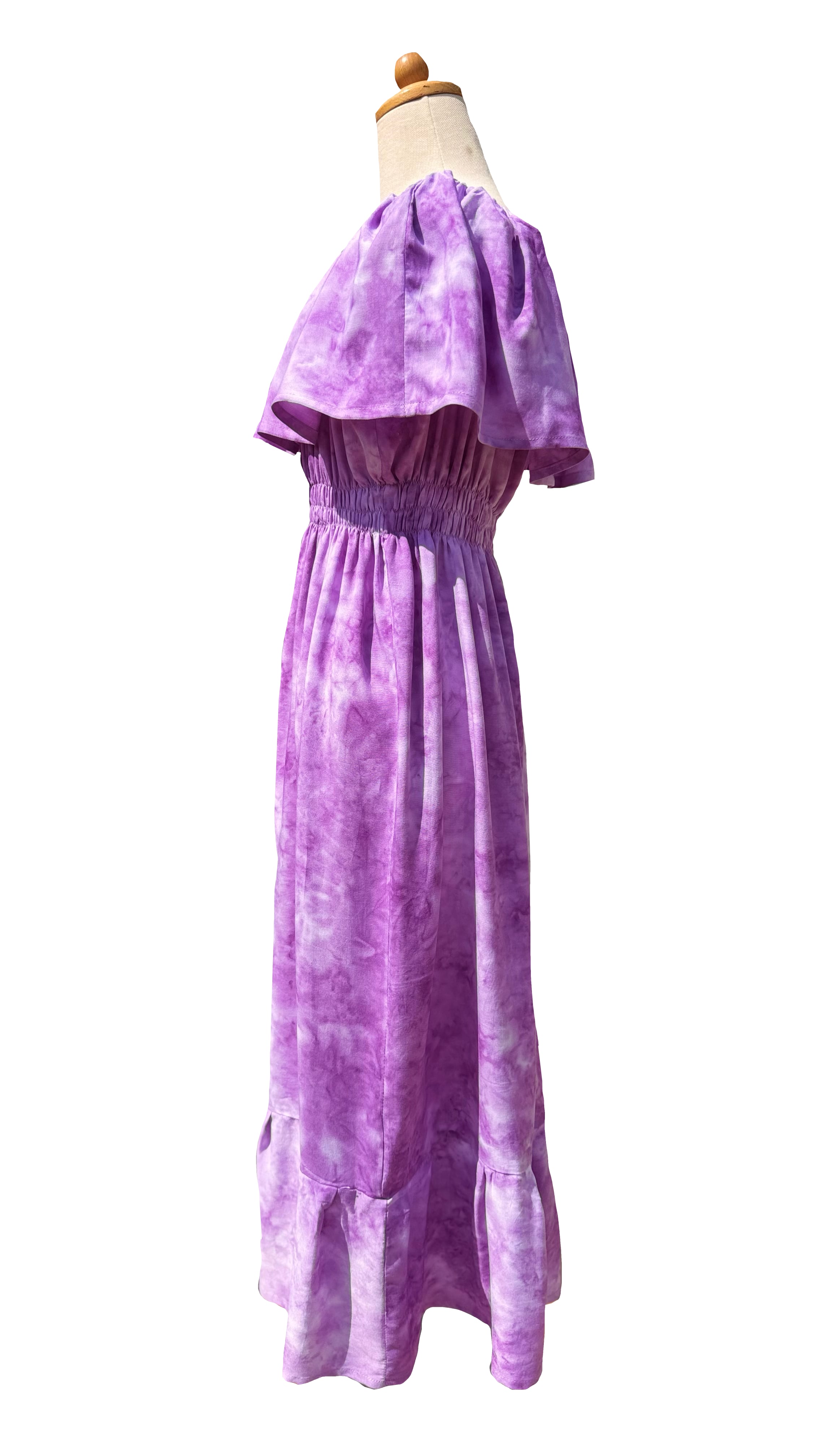 着丈は140〜150cmで、体型を選ばないデザインが嬉しいポイント。フラの衣装としてだけでなく、リゾートや旅行、夏のお出かけにも最適です。「華やかさがありながらも、日常使いでも違和感のないワンピースをお探しの方」にぴったりの一着です。