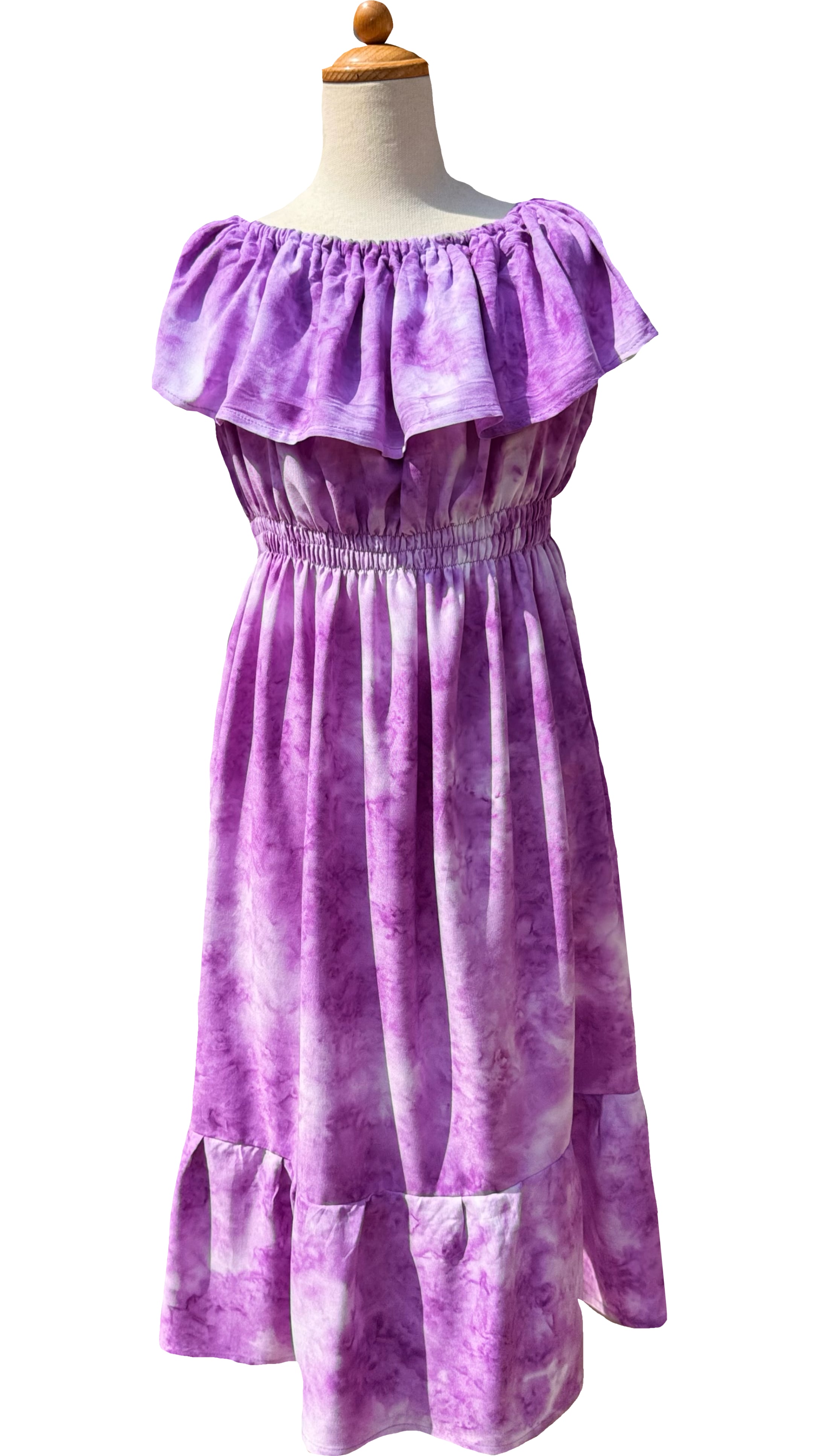 サイズは120〜130で、体型を選ばないデザインが嬉しいポイント。フラの衣装としてはもちろん、リゾートや旅行、友達とのお出かけにも最適です。「華やかさと可愛らしさを兼ね備えたワンピースを探している方」に特におすすめのアイテムです。