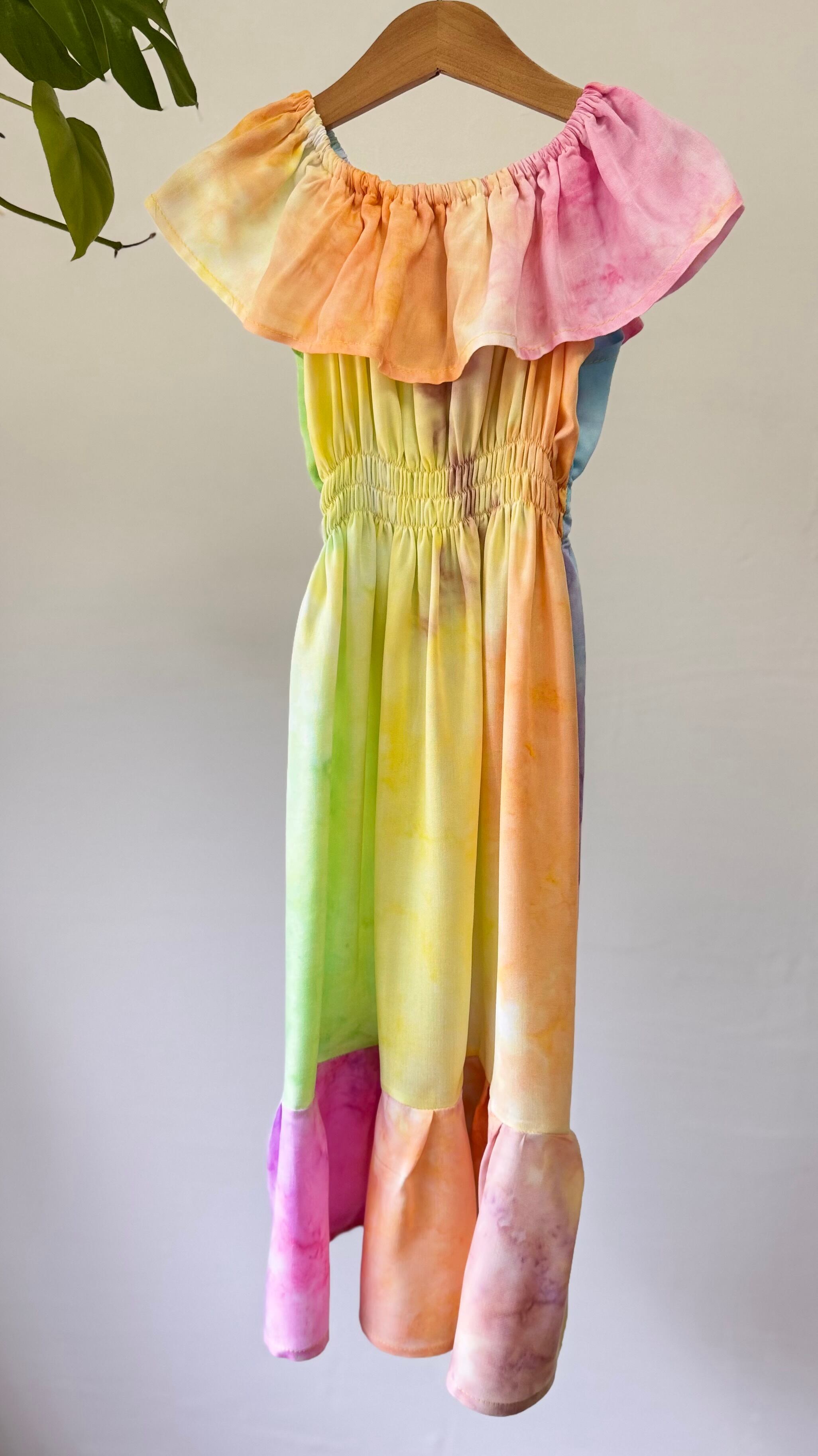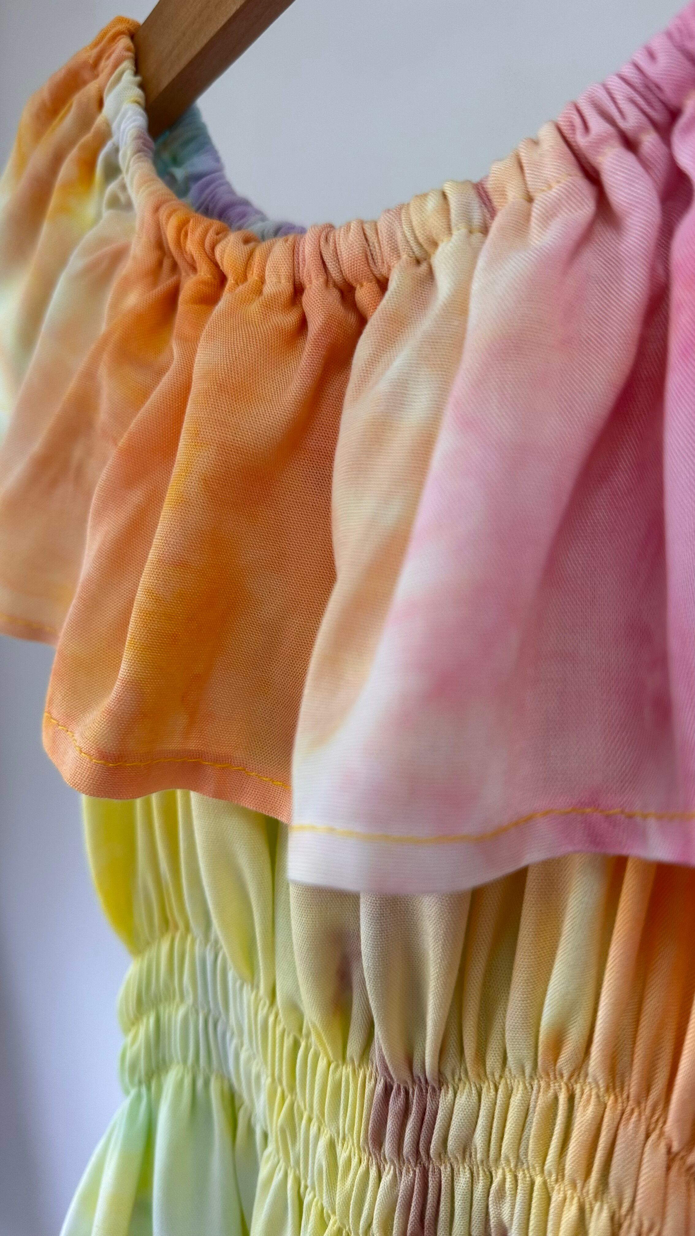 サイズはSで、体型に合わせたデザインが魅力。フラの衣装としてはもちろん、リゾートや旅行、お友達とのお出かけ時にも大活躍します。「楽しい色合いとスタイルを求める方」にもおすすめの一枚です!
