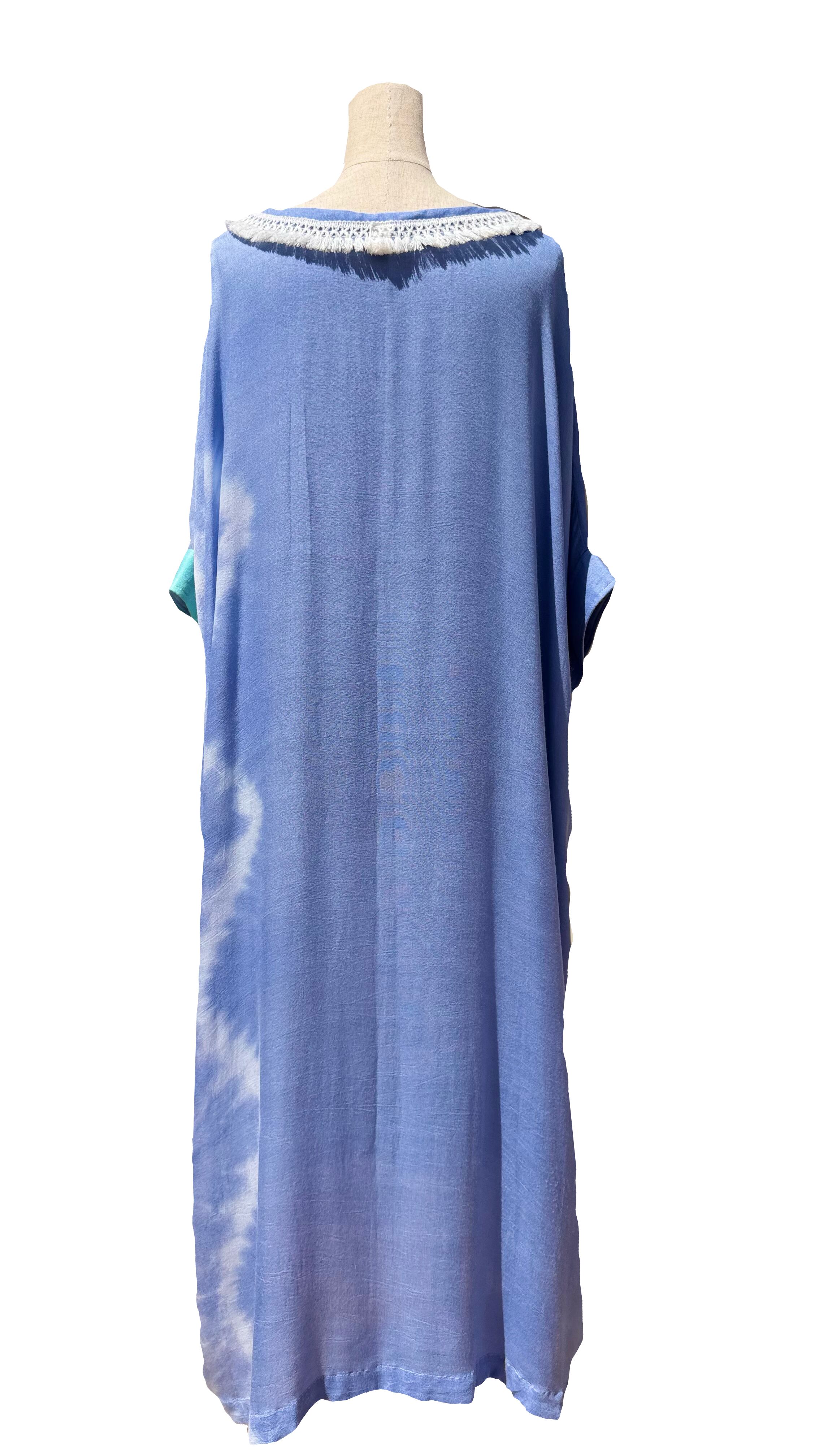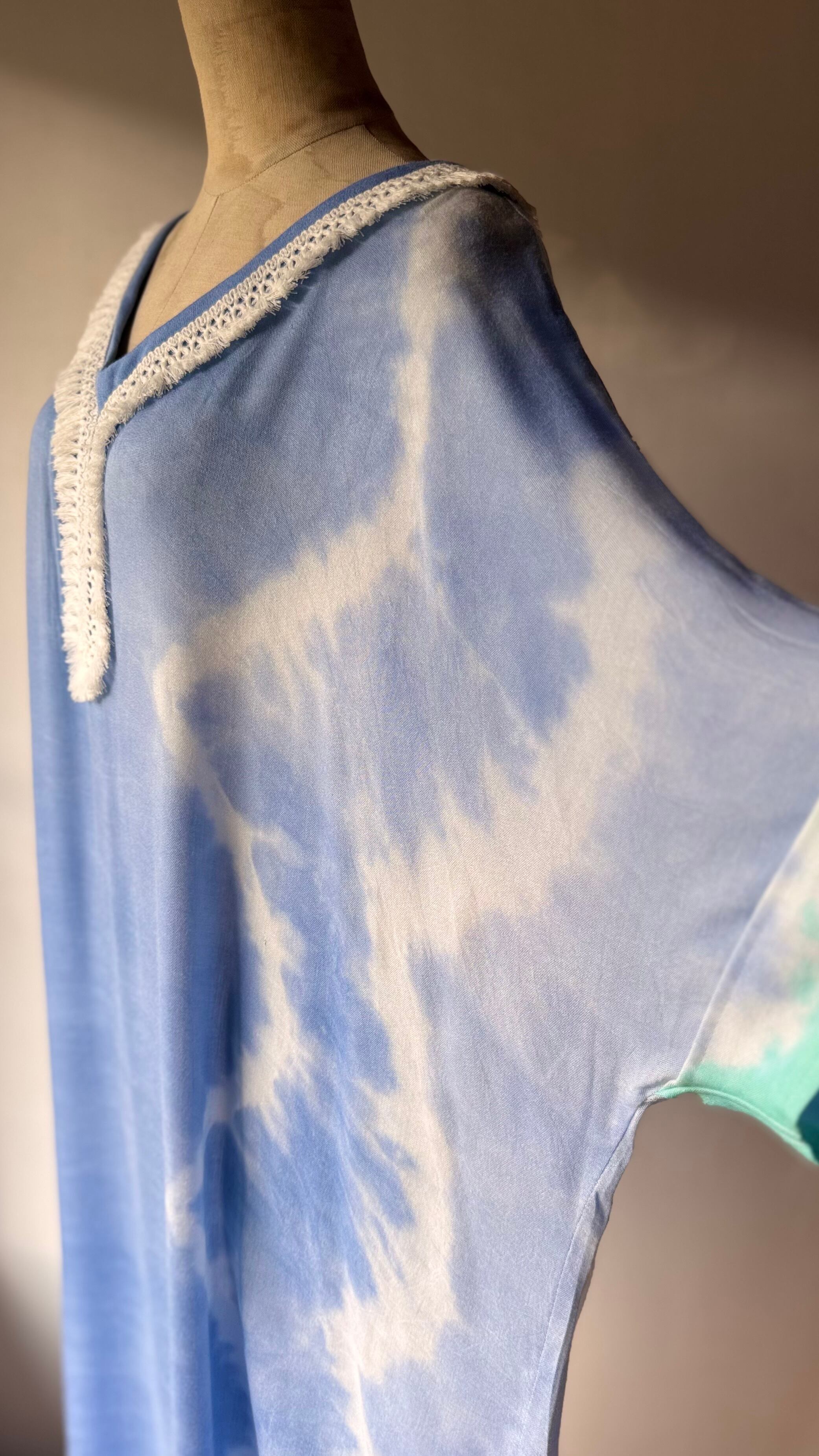 自然の海をイメージした柄をレーヨン生地に一枚一枚手作業で染め上げるため、