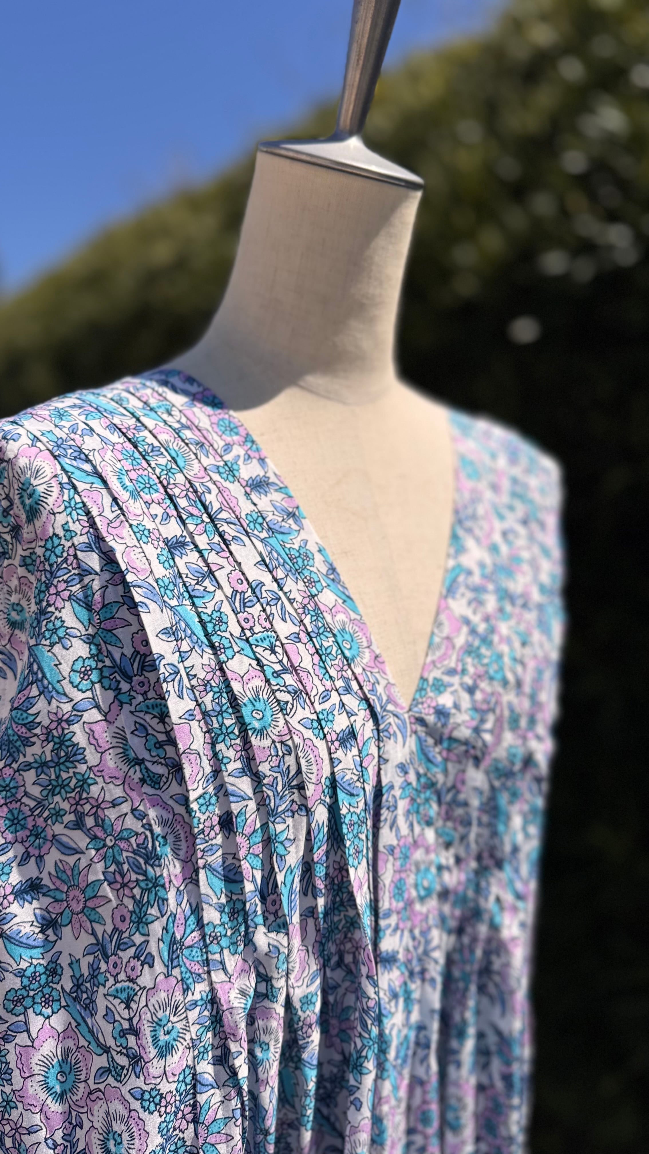このワンピースは、華やかな花柄と上品なピンタックのディテールが特徴で、シンプルながらもおしゃれな印象を与えます。裾は両サイドが長いデザインになってます。両サイドには便利なポケットが付いており、実用性の高い一枚です。カジュアルな日常使いから特別なシーンまで、幅広いシチュエーションにフィットするアイテムです。「華やかさを大切にしつつ、快適さも追求したい方」にぴったりです。