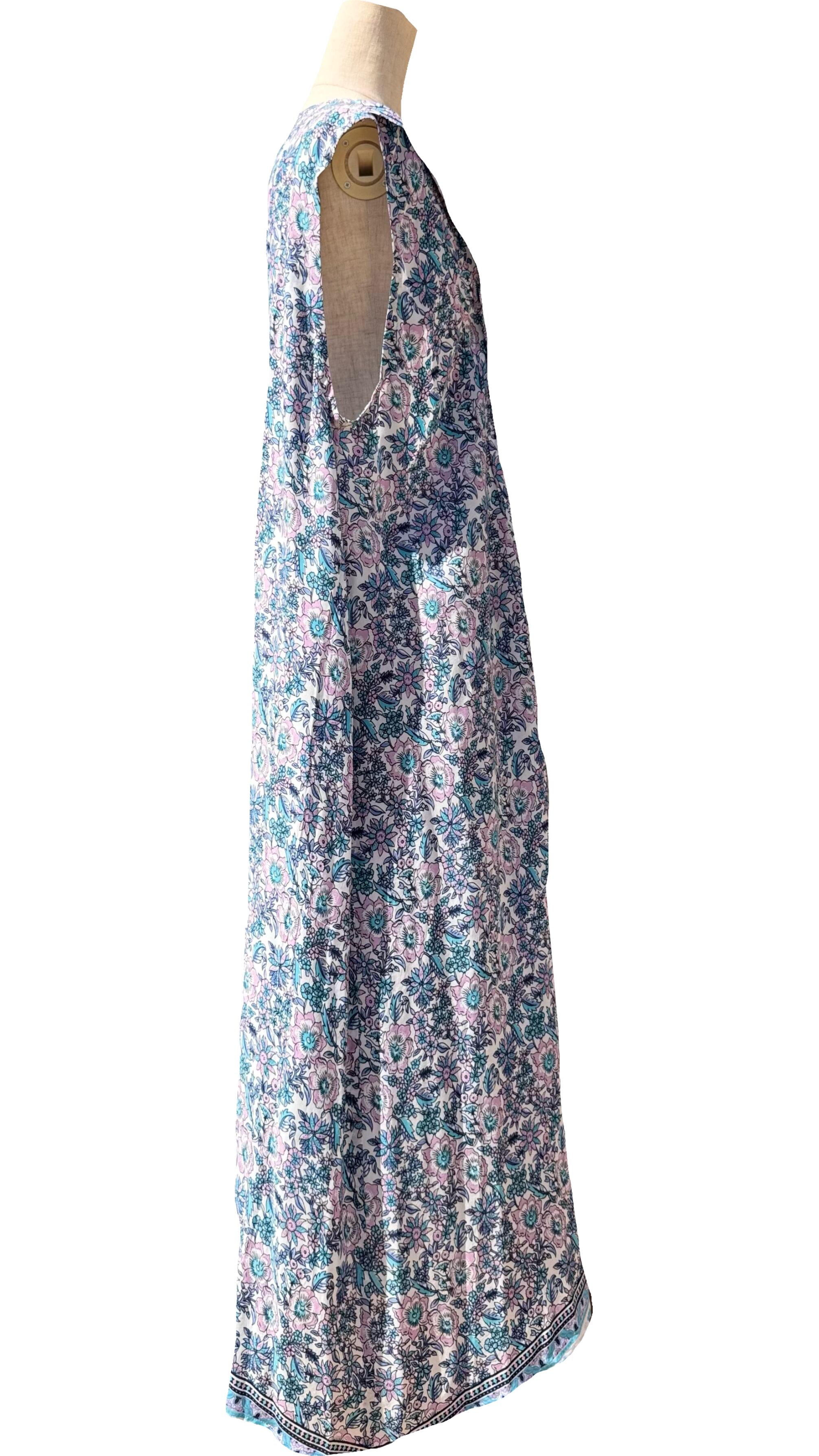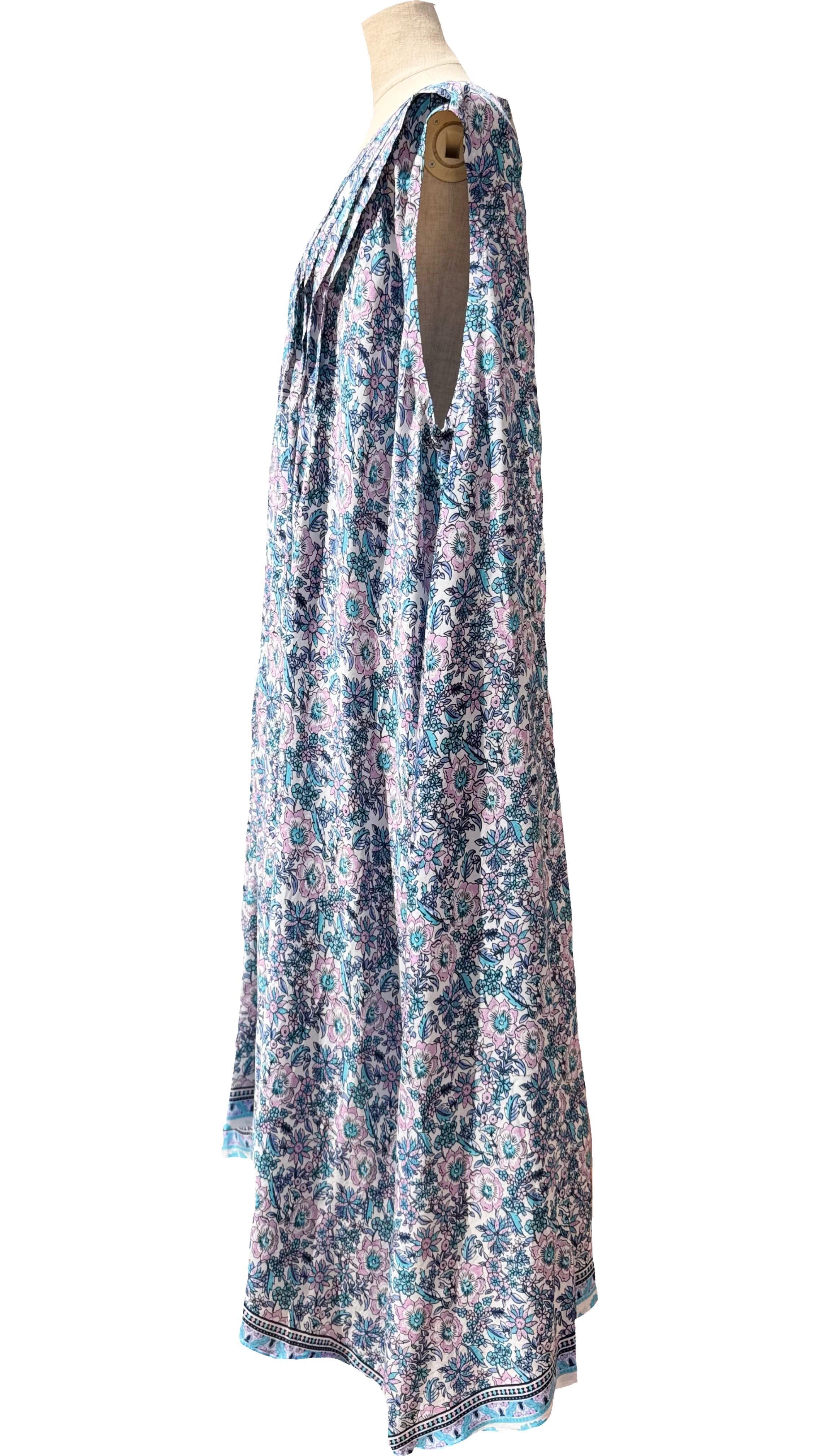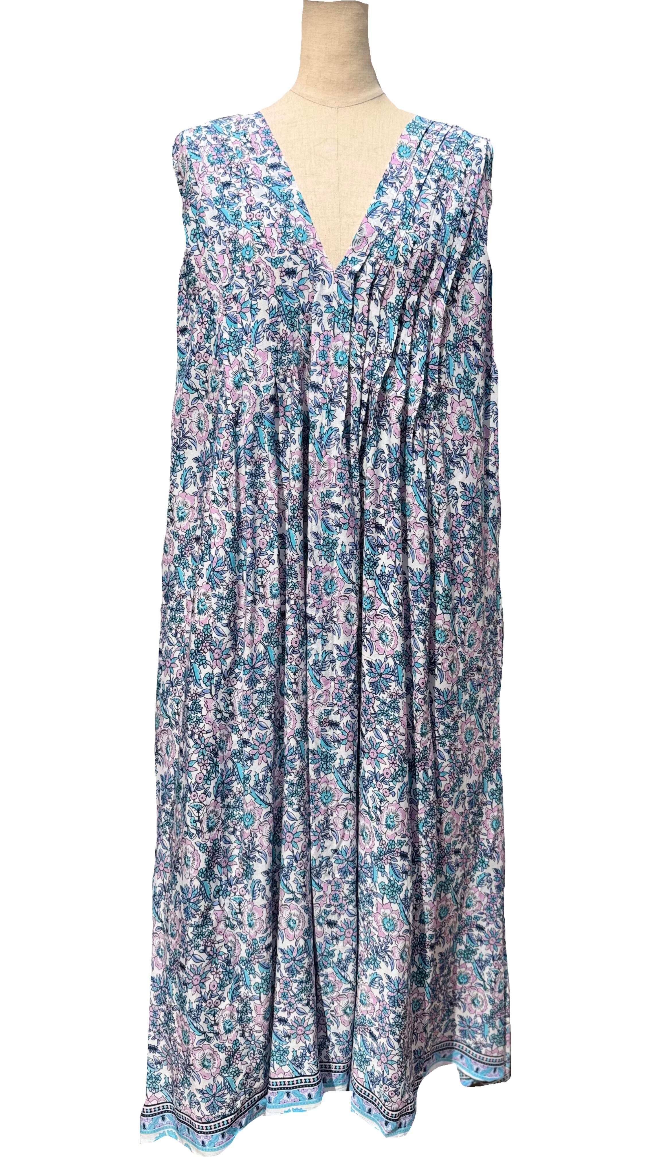 ピンタックノースリーブワンピース 花柄