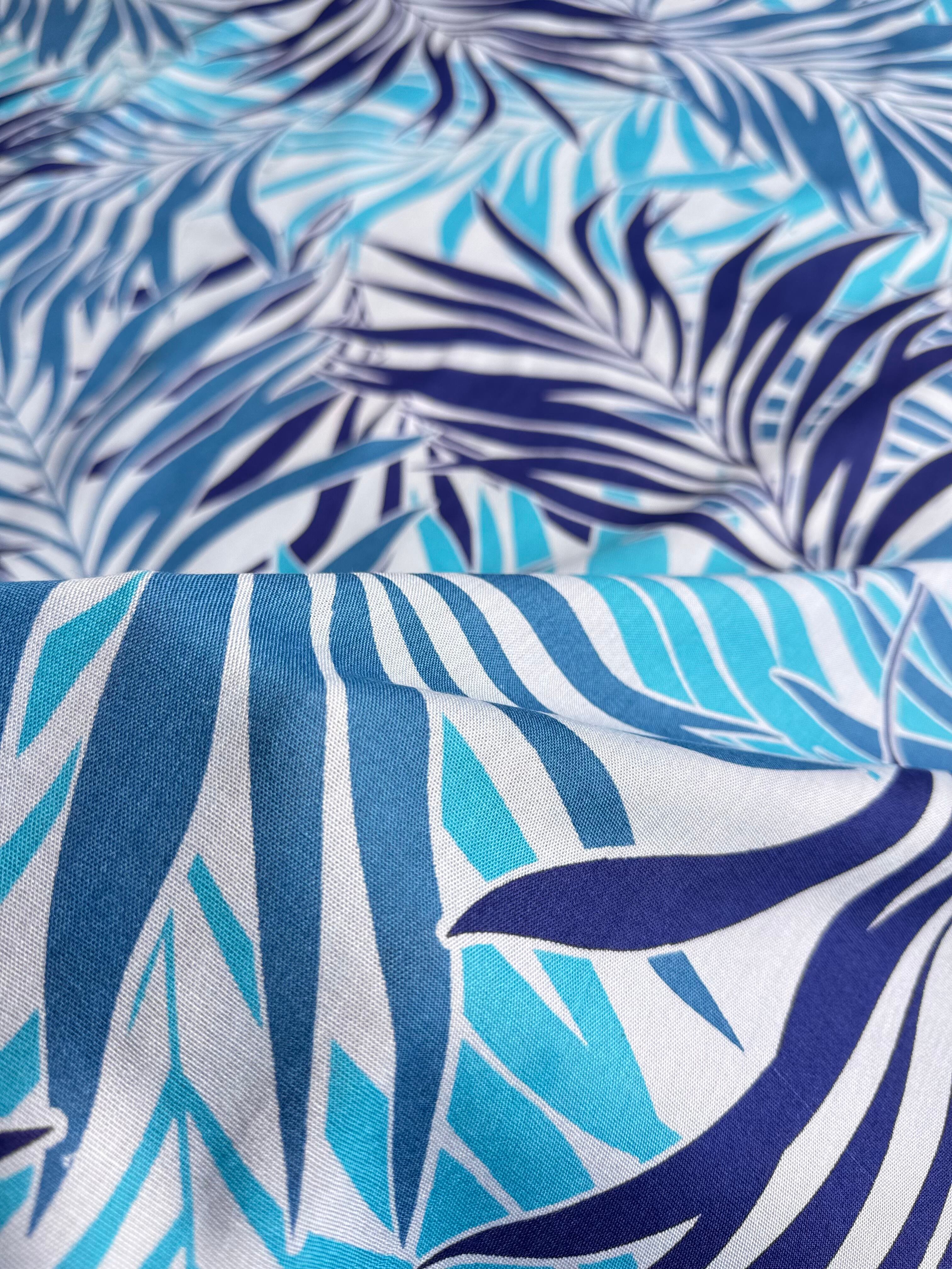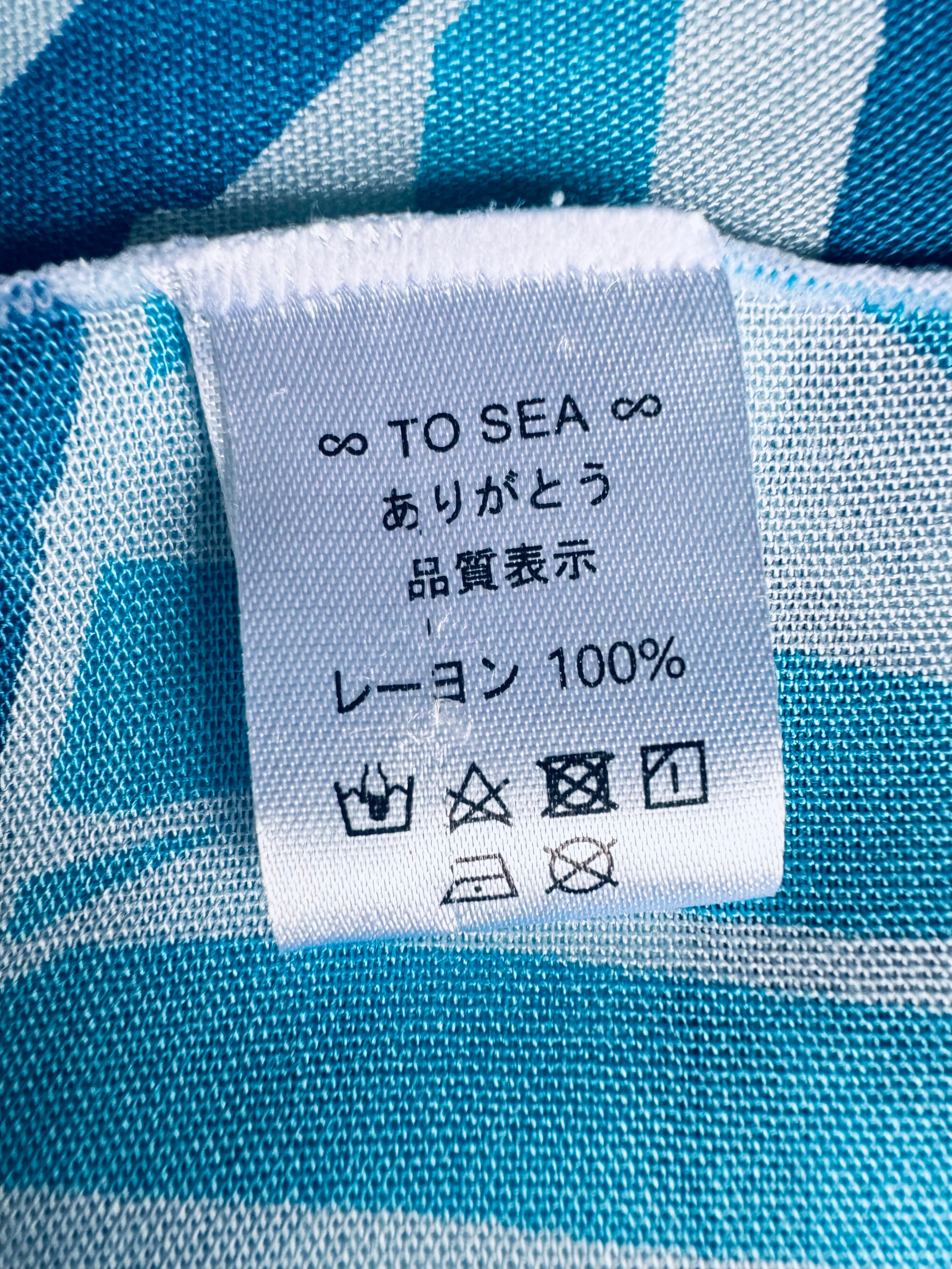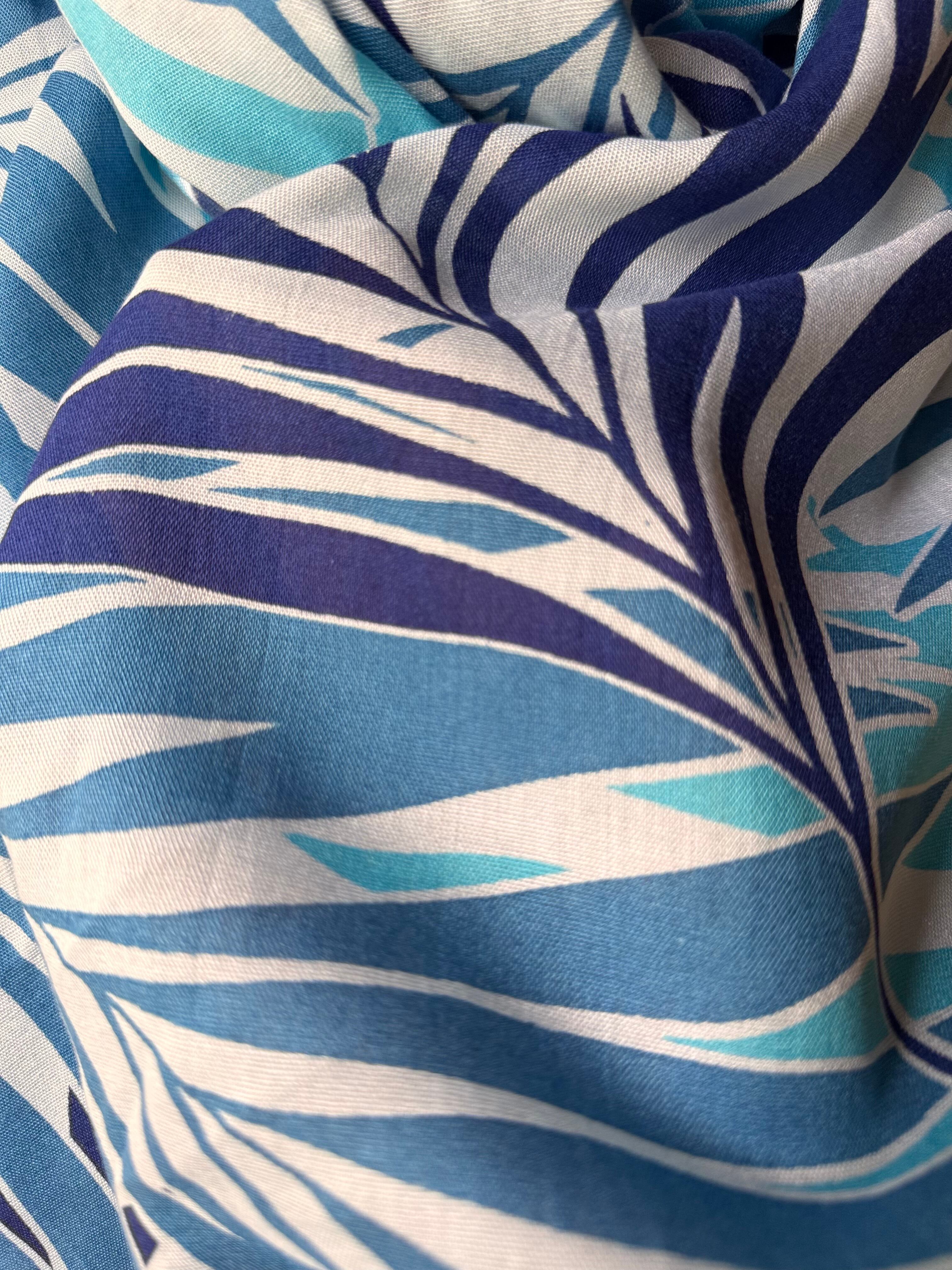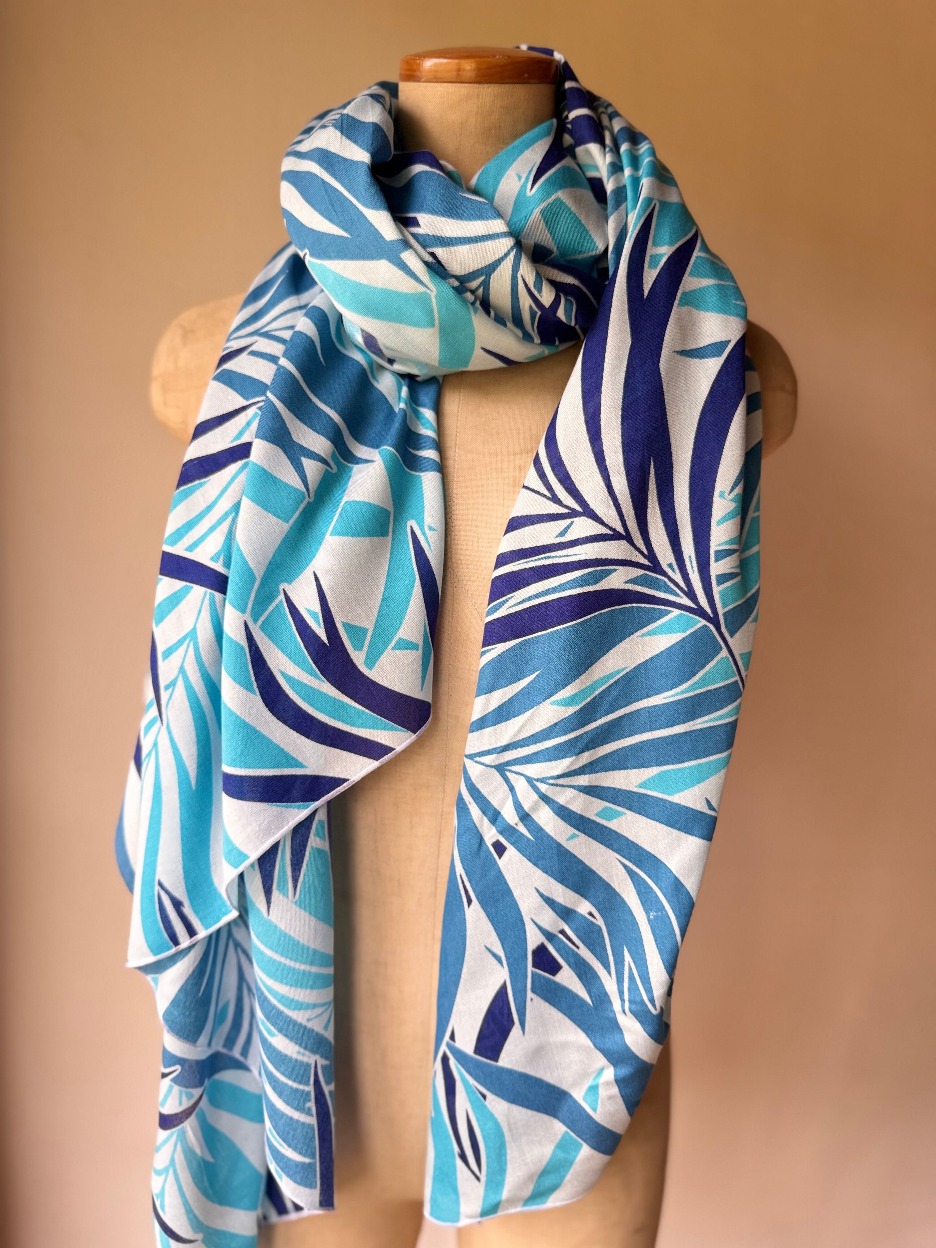 このパレオは、美しい青とライトブルーの色合いが特徴で、涼しげでリフレッシュできるデザインとなっています。ビーチやプールでの活用はもちろん、カジュアルスタイルのアクセントやインテリアとしても使用できる多機能なアイテムです。「リゾート気分を味わいたい方にぴったりの一枚」です。